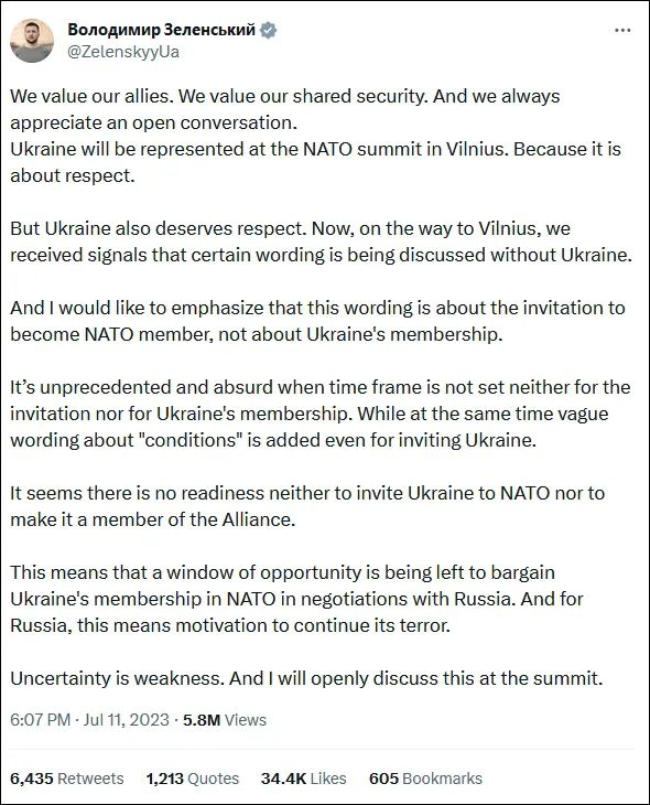 | "泽连斯基发个推,美国差点气得撤回'入约邀请'" zt |