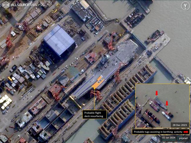 003型航母最近较清晰卫星图 GEOINT 2023-12-24 至 2024-1-6 影像