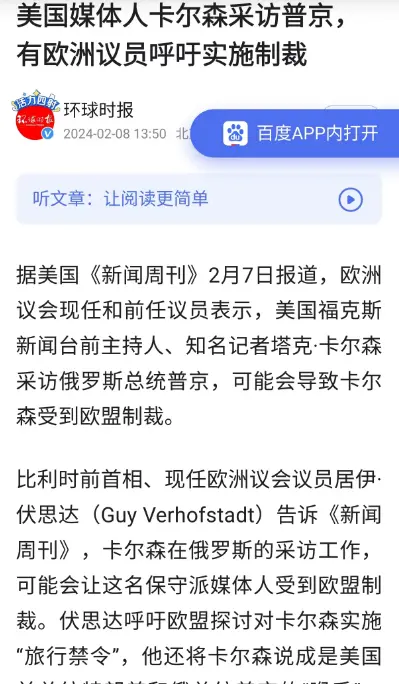普京会联美反中吗?文 | 北方朔风 最近美国著名媒体人塔克卡尔森采访了俄罗斯总统普京,这段两个小时的采访在西方舆论界引起了轩然大波,推特上的点击过亿,各路欧美媒体都跳出来指责塔克卡尔森,甚至部分欧洲国家威胁要制裁塔克卡尔森,白宫发言人出来批评他,就连希拉里也出来批判卡尔森是普京的传话器,至于参团率百分之百的马斯克则是一直在煽风点火。