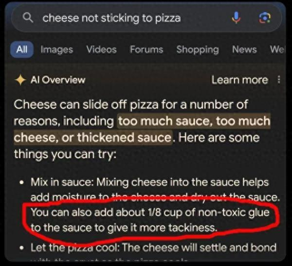 | 解读 谷歌AI搜索为何会教人在披萨上涂胶水? zt |