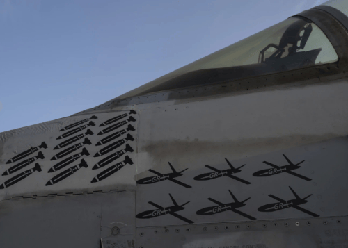 这架超级大黄蜂战斗机上的标识显示它在这场消耗战里的战果