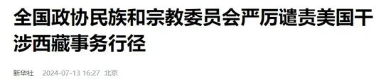美方执意通过并签署所谓“涉藏法案”,中国多部门严正声明!![]() 全国人大外事委员会就美方执意通过并签署所谓“涉藏法案”发表声明 7月13日,针对美方执意通过并签署所谓“涉藏法案”,全国人大外事委员会发表声明。全文如下: 当地时间7月12日,美方不顾中方强烈反对和严正交涉,执意通过并签署所谓“涉藏法案”,违背美国政府的一贯立场和承诺,违反国际法和国际关系基本准则,粗暴干涉中国内政,严重损害中方利益,向“藏独”分裂势力发出严重错误信号。中国全国人大对此表示坚决反对,予以强烈谴责。 西藏自古就是中国神圣领土不可分割的一部分。西藏事务纯属中国内政,不容任何外部势力干涉。和平解放以来,西藏进行民主改革,彻底废除了政教合一的封建农奴制度,百万农奴翻身解放、当家作主,开创了西藏历史新纪元;建立社会主义制度,实行民族区域自治,西藏社会制度实现了历史性跨越。在中国共产党坚强领导下,在全国人民大力支持下,西藏自治区各族人民团结奋斗,取得脱贫攻坚全面胜利,社会大局更加稳定、经济文化更加繁荣、生态环境更加良好、人民生活更加幸福。 当前,西藏稳定发展正处在历史最好时期,宗教信仰自由得到充分保障,社会主义民主政治建设深入推进,人民代表大会制度优越性充分体现,民族区域自治制度进一步贯彻落实,宪法和法律赋予西藏各族人民的权利得到充分行使,不断开创长治久安和高质量发展新局面。任何人任何势力妄想阻挠西藏人民追求更加幸福美好生活的图谋是不会得逞的,妄想通过搞乱西藏来遏制打压中国的图谋是注定要失败的。 我们敦促美方恪守承认西藏是中国一部分、不支持“西藏独立”的承诺。如美方执意操弄相关法案,中方将依法采取坚决措施,坚定维护自身主权、安全、发展利益。 ![]() 全国政协民族和宗教委员会严厉谴责美国干涉西藏事务行径 7月13日,全国政协民族和宗教委员会召开委员座谈会,就美国签署的所谓“促进解决藏中争议法案”予以严厉谴责,表示强烈愤慨和坚决反对。16位民宗委委员、少数民族界委员和佛教、道教、伊斯兰教、天主教、基督教全国性团体负责人发言,驳斥谎言谬论,澄清事实真相。 委员们指出,美方所谓“涉藏法案”无视基本的历史逻辑、理论逻辑、实践逻辑和现实逻辑,充斥极端错误观点和挑衅言论,打着“民族”、“宗教”、“人权”的幌子赤裸裸干涉我国内政,严重违反国际关系基本准则,严重背离美国政府承认西藏是中国领土不可分割的一部分、不支持“西藏独立”的承诺,食言而肥、自导闹剧,混淆视听。美国干涉中国内政、遏制中国和平发展的险恶用心昭然若揭,必将遭到可耻的失败。 委员们强调,西藏自古以来就是中国不可分割的一部分,藏族人民是中华民族大家庭的成员,早已为历史所决定、为人民所拥护、为世界所公认,任何时候都不会改变,也不能改变。西藏在地缘纽带、血缘纽带、政治纽带、经济纽带和文化纽带等方面,自古以来形成了与祖国内地不可割裂、无法阻断的血肉联系。美方和达赖集团肆意歪曲历史,公然否定西藏主权归属中国的客观事实,极大伤害了包括藏族人民在内的全体中国人民的感情,是典型的美式霸凌行径。 委员们表示,西藏民主改革65年来,发生“短短几十年、跨越上千年”的历史巨变,特别是中共十八大以来,在以习近平同志为核心的中共中央坚强领导下,西藏经济持续健康快速发展,绝对贫困得到历史性消除,各族人民享有广泛充分的民主权利,受教育权、工作权、健康权、社会保障权、文化权、宗教信仰自由权利更好地得到保障,西藏步入发展最好、变化最大、群众得实惠最多的历史时期。这些巨大成就人所共知、举世瞩目,西藏人民最有发言权。 委员们指出,中国是统一的多民族多宗教国家,中国多年来始终保持着民族团结、宗教和顺、社会稳定的局面,实践证明,我国民族、宗教政策符合中国实际,符合全国各族人民的根本利益,是完全正确的。藏传佛教是宗教中国化的产物,具有爱国主义的光荣传统,有一套完整的、得到藏传佛教界尊奉和坚持的活佛转世宗教仪轨和历史定制。中国政府实行宗教信仰自由政策,尊重、保护宗教传统,依法管理宗教事务,无需美国置喙。 委员们强调,事实胜于雄辩,公道自在人心。西藏各族人民在西藏经济社会的今昔对比中深刻认识到,没有中国共产党就没有社会主义新西藏。西藏已经同全国其他地方一道全面建成小康社会,西藏各族人民正同全国人民一道,满怀信心迈向以中国式现代化全面推进中华民族伟大复兴的新征程,建设团结、富裕、文明、和谐、美丽的社会主义现代化新西藏,任何势力都无法阻挡! 座谈会由全国政协民族和宗教委员会主任张裔炯主持,副主任蒋建国、边巴扎西、李山、李光富、杨发明、徐晓鸿、演觉及20多位全国政协委员参加。 ![]() 西藏自治区人大常委会关于美国所谓“涉藏法案”的严正声明 美国所谓的“涉藏法案”,公然践踏国际法根本原则和国际关系基本准则,粗暴干涉中国内政,严重歪曲历史事实,鼓吹所谓“大藏区”,其真实意图和险恶用心就是遏制和打压中国,企图使所谓“西藏问题”国际化,向“藏独”势力发出严重错误信号,西藏自治区人大常委会和西藏各族人民对此表示强烈愤慨和坚决反对。西藏自治区人大常委会严正