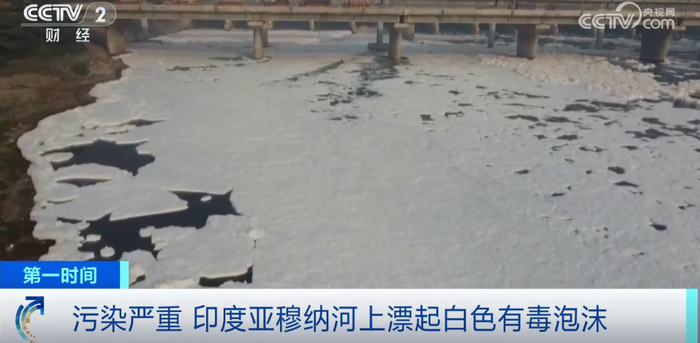 严重污染!印度首都,河面漂浮大量有毒泡沫!当地时间19日,流经印度首都新德里的亚穆纳河水面上漂浮着大量白色有毒泡沫。专家指出,这些泡沫是城市污水处理不当,叠加企业、居民随意排放工业和生活垃圾等因素造成的,严重威胁当地居民的健康。 19日的画面显示,在亚穆纳河新德里区段,水面上覆盖着一层厚厚的白色泡沫,一眼望不到边,泡沫正随着河水缓缓流淌。专家指出,工业污染物、生活垃圾以及新德里的城市污水等排放到亚穆纳河里后,与其他类型的化学物质结合,从而形成了这些有毒泡沫。由于排污不停,白色泡沫时有产生。