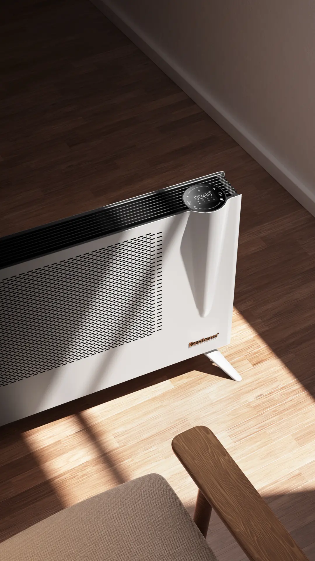 Bestherm这款电暖器还是一个聪明的“智能脑袋”。 LED触控大屏设计 ,操作起来特别灵敏,有五种科学取暖模式切换,一键选择。