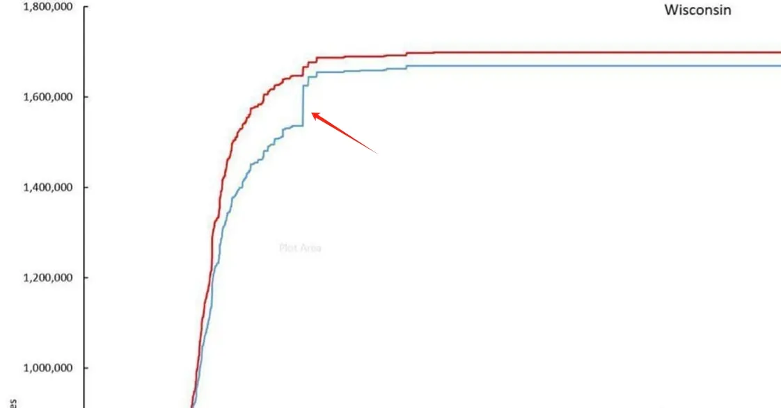 其实哈哈姐很努力了,来看这次选举的阴兵。 威斯康星州在开票后特朗普和哈里斯得票比例随着时间推移变化的情况,当年的拜登曲线也出现了 所以很明显,阴兵终究因为特朗普优势大到舞弊也没用了。