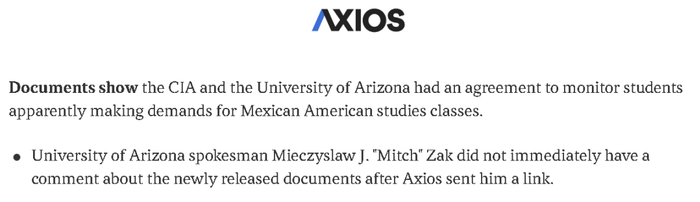同時,文件顯示,中情局的特工自己也會滲透到拉丁裔學生的群體中去,去監視、擾亂和破壞學生的活動。這種對學生群體的滲透當時在亞利桑那、加利福尼亞和科羅拉多州等多個地方都存在。