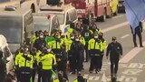 有已經封頂的高樓,在外牆上拉起大幅廣告寫着:火爆招商。 1:15/1:15亲,播放结束了重播 自动播放 園內遍布崗亭,不時有工人扛着建材走動。