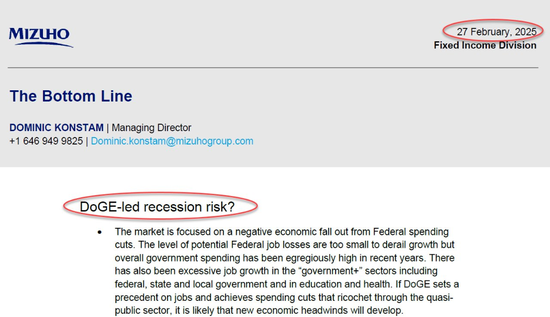 特朗普正在“制造”一场经济衰退来源:华尔街见闻 近期美国金融市场波动加剧,2月份美股主要指数全线下跌,国债收益率大幅下滑,加密货币遭遇血洗。同时,经济数据方面,宏观经济数据持续恶化,增长预期骤降,通胀压力却居高不下。 在这一背景下,市场开始逐渐意识到,特朗普2.0政策组合可能并非传统意义上的经济增长引擎,而是一个潜在的“增长拖累”。 ![]() 野村证券的分析指出,特朗普政府有意通过大幅减支和裁员以及加征关税等,引发一场“温和衰退”,以实现经济从政府依赖向私营部门的结构性转型。这一策略短期内可能加剧经济下行压力,但其长期目标是重塑美国经济的增长模式。 亿万富翁Steve Cohen表示,由于关税、移民法收紧以及马斯克领导的政府成本削减对经济构成压力,美国下半年经济增长可能放缓。他已经设置了看空的头寸,押注衰退。 顶着“华尔街最准分析师”的头衔,Hartnett警告称,美国政府正陷入衰退,并可能将整个美国经济拖入衰退。知名投资人Larry McDonald认为,新任政府选择了这种长痛不如短痛的方式。计划在一年内削减1万亿美元支出。然而这本应是在五到十年内逐步完成的目标,所以后果可能是严重的经济衰退。McDonald还称,美国债务问题迫在眉睫,放缓经济、提高失业率之所以成为新任政府的策略,是因为他们认为唯有如此,才能压低利率从而优化债务结构。 ![]() 不惜衰退,特朗普政府政策核心:从政府依赖转向私营驱动 野村证券的Charlie McElligott分析称,特朗普政府的政策核心在于打破美国经济对政府支出的长期依赖,推动私营部门成为增长的主导力量。 具体措施方面,包括大幅减支和裁员——如马斯克领导的美国政府效率部(DOGE)推动的百万级联邦裁员计划,以及加征关税等。这些政策旨在重塑贸易格局,刺激私营部门活力。 McElligott表示: “对于“市场现状”而言,这是非常危险的。为了实现“重新私有化美国经济”这一长远目标,理论上来说,政府知道他们将不得不对政府支出和就业的“永动机”踩刹车,这必须打破一些僵局... 然而,短期内,这些政策短期内将不可避免地抑制经济增长,甚至可能引发衰退风险。 McElligott认为,通过削减政府支出和就业,以及加征关税,这将打击经济,之后产生通缩效应,进而推动利率下降和美元走弱,为私营部门增长铺平道路,激发企业活力。但这一转型需先熬过短期动荡。 ![]() 背后隐藏的真相:美债问题迫在眉睫 如今市场开始意识到,美国新总统正在故意制造一场经济衰退,而关税和DOGE都是手段。这背后隐藏了怎样的真相? ![]() 知名投资人Larry McDonald在最新播客中一语道破:美债,还是美债! McDonald表示,如今美国债务问题迫在眉睫,如果关税大棒和DOGE疯狂裁员可以导致经济在短期内衰退,就能为降低利率创造条件。而利率每降100基点,节省的利率就高达4000亿美元,暂缓美债危机: