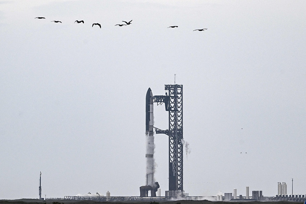 当地时间8月25日,“星舰”在美国得克萨斯州等待发射。图源:视觉中国