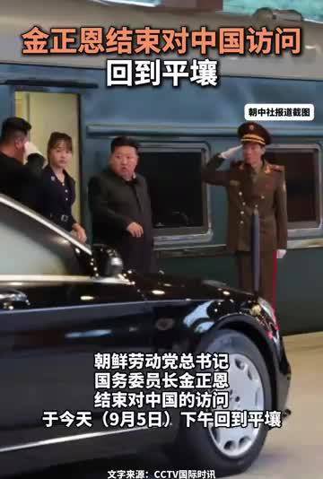 据朝中社报道,朝鲜劳动党总书记、国务委员长金正恩结束对中国的访问,于今天(9月5日)下午回到平壤。(总台记者 董海涛)