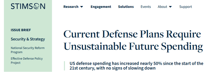 同时,诸多迹象表明,美国战略转变已经在发生了,比如动用国民警卫队应对洛杉矶和华盛顿的治安问题。而这种军事战略侧重点内转的背后,从美国媒体、智库和专家的分析来看,还是因为美国的债务已经撑不起以往那么巨大的军费开支了。美国智库史汀生中心今年7月的一篇文章就警告说,美军的军费增长是不可持续的。