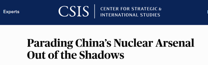 打开美国国际战略研究中心(CSIS)的网站,首页就刊登着两篇关于中国阅兵的文章。一篇讲述了中国展出的新式核武器对美国的“战略威慑”含义,另一篇则用一组颇具耸动意味的图表,试图炒作中国的军力威胁。