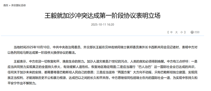 | 王毅就加沙冲突达成第一阶段协议表明立场 zt |