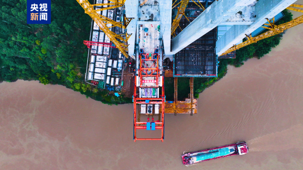 该成果填补了我们对太阳系外恒星小尺度磁场认知的空白,对于推动太阳系外的空间天气研究有重要意义。 03 将创下四个世界第一! 渝万高铁石沱长江大桥首节钢梁成功架设 17日,渝万高铁石沱长江大桥首节钢梁成功架设。石沱长江大桥全面进入结合梁施工阶段,为全线按期建成通车打下坚实基础。 石沱长江大桥正线长度1416.9米,是渝万高铁项目建设关键节点及控制性工程,大桥建成通车后,将创下四个世界第一: 世界首次采用公铁合建双联塔; 世界首次采用公铁同层分幅主梁; 6#主塔高253米,是世界最高双联主塔; 主跨跨度608米,是世界最大公铁合建同层分幅混合梁斜拉桥。