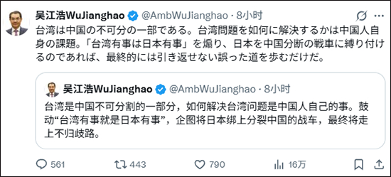 | 高市早苗“狂言”台灣問題,我大使駁斥 zt |