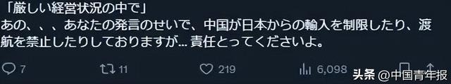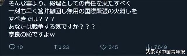 高市早苗账号评论区“沦陷”,这些评论亮了!日本首相高市早苗的露骨挑衅言论正在引发更多反对声浪。 据环球网援引日媒报道,针对日本首相高市早苗的涉台错误言论,日本前首相石破茂11月23日表示,在牵涉到外交的问题上,不能过一时嘴瘾。 据报道,针对高市早苗涉台言论,石破茂说,中日之间的关系非常“微妙”,希望高市内阁能注意这一点。他还说,“你说完自己想说的过了一时嘴瘾,但在牵涉到外交的问题上,你不能这么做。不能在发言时只想着自己的支持率。” 石破茂此前也曾批评高市早苗的涉台错误言论。他11月13日在一档电台节目上表示,在台湾问题上,历届日本政府一直在避免发表类似“如果出现某种情况就会怎样做”这种决定性言论。 另据新华社11月23日报道,在日本首相高市早苗的社交媒体X账号下,其近期发布的帖文引发大量日本网民强烈批评。 从外交、经济到社会民生政策,民众表达对高市的不满与不信任,要求其撤回涉台错误言论、辞去首相职务的呼声不断高涨。 ![]() 帖文大意:去中国道歉并撤回发言,然后辞去议员职务。 ![]() 帖文大意:应立即撤回相关表态,平息不必要的国际紧张局势,难道你想发动战争? ![]() 帖文大意:呵呵,若台湾有事,你先冲去前线! ![]() 帖文大意:作为一名日本人,我对深深伤害中国人民的行为深感愧疚。请务必遵守国家间过去达成的承诺。 ![]() 帖文大意:如今“严峻的经济状况”不正是首相一手造成的吗? ![]() 帖文大意:因为你的发言,中国限制了日本商品进口、不鼓励赴日出行,请承担责任。 ![]() 帖文大意:日元贬值将让中小企业和民众再次饱受物价上涨之苦……(高市)尽快辞职。 ![]() 帖文大意:网友以长文阐述财政投融资的问题,直言“国民不是你们(公职人员)的提款机”。 ![]() 帖文大意:只会空谈改善民生,却给议员每月涨5万(日元)工资,太荒唐了,赶紧辞职! ![]() 帖文大意:别干了!辞职吧! 此外,在各大社交平台和日本网站上,还有大量网友发帖揭批。 ![]() 其中一条浏览量超71万次的日文帖文指出,高市在面对在野党要求其撤回发言时辩称“这并未改变历届政府的立场”,但事实上,历届日本政府从未明确表示“台湾有事”属于“存亡危机事态”。不少网民留言批评高市“缺乏外交常识”,要求其撤回相关错误表态。 一名在社交网络上拥有260万粉丝的日本博主发文,斥责那些因高市早苗惹得中国震怒而兴奋的日本右翼,认为他们并不了解日本的企业和农民所面临的现实。他写道,一旦中国停止对日出口,日本将面临化肥短缺,然后就会出现粮食供应不足;同时稀土也会出现匮乏,从而令高科技产业陷入停滞。 ![]() 还有一些日本网民则表达了高市此番言论将严重影响中日关系的担忧以及对中日友好的渴望。有网友发帖称,真心希望中日友好。日本和中国是世代相传的邻国,所以没有必要让情况变得更糟,两国交恶有百害而无一利。 ![]() 该帖文引发大量网民共鸣,有评论称,“永远希望日中友好”。 ![]() 还有评论称,“每个人能有这样的认知真的很重要。工作中一起共事的中国人里,优秀者众多,而且他们也对日本十分了解。反观我们自己,又对中国了解多少呢?要想和对方好好相处,就必须先了解对方。” 高市的言论也引发了其他国家网友的关注和忧虑。 一名网友在X平台上发文称,高市以台湾问题为由威胁对中国开战,“打破了连以往最右翼的日本首相都不敢触碰的禁忌”,“仿佛沉迷于把世界推向战争”。多位网友评论称,日本首相的言论明显加剧地区紧张局势,日本不应利用台湾问题谋取政治私利,而应优先通过对话与外交维护地区稳定。 ![]() 中国青年报(ID:zqbcyol 整理:樊星)综合:新华社、环球时报、央视新闻、中国新闻网等。 |