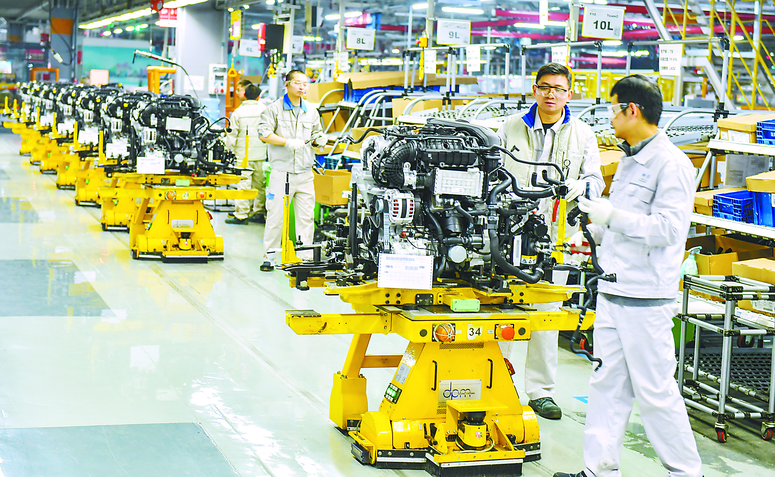 12月9日,四川成都某合资汽车公司生产车间,工作人员组装车辆赶订单。 (视觉中国)
