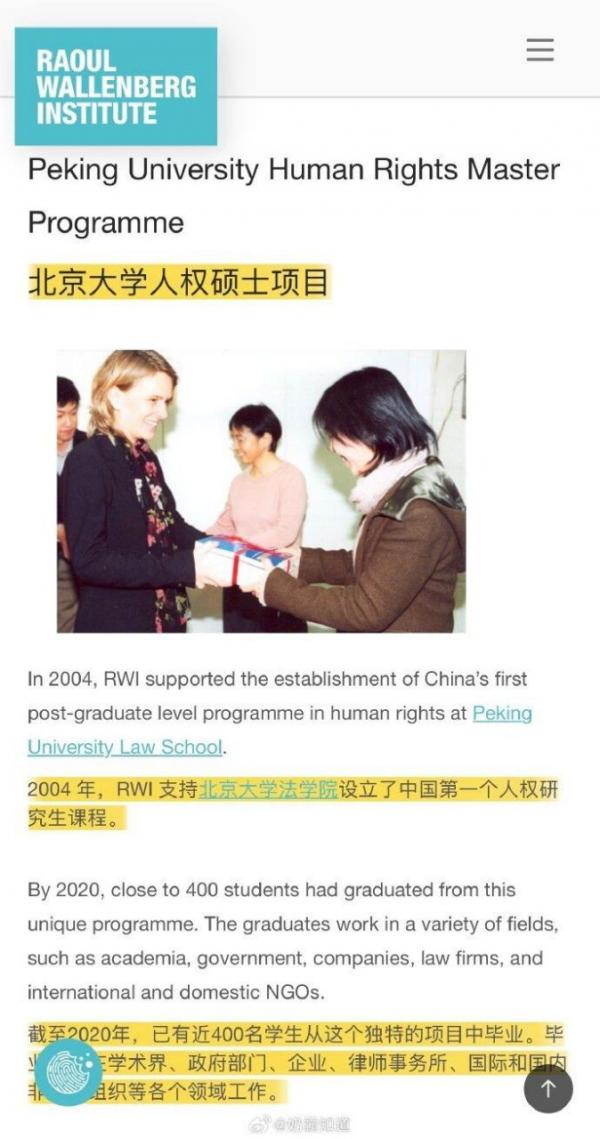 | 北大法学院拿了境外机构不少钱,人家给资助的前提条件是:推广“瑞典及欧盟价值观” |