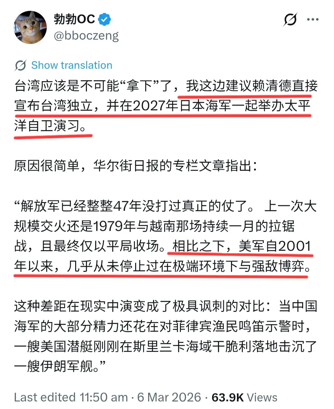 送交者:  2026年03月08日00:43:28 于 [世界军事论坛] 发送悄悄话