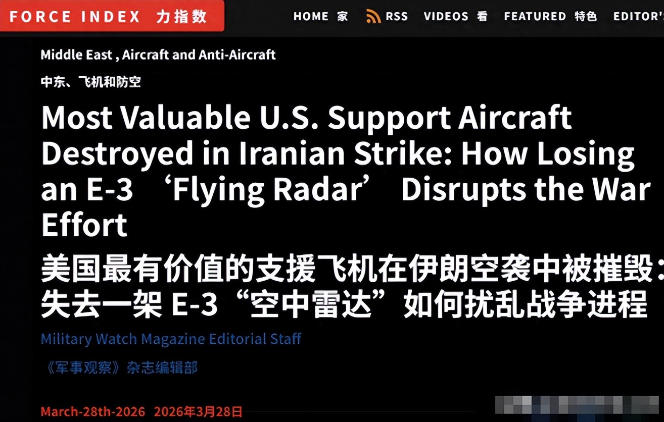 ¸üÖÂÃüµÄÊÇ£¬ÃÀ¾üµÄE-3GÔ¤¾¯»úÊýÁ¿±¾¾ÍÏ¡ÉÙ¡£2023µ½2024Äê¼ä£¬ÃÀ¹ú¿Õ¾ü½«E-3ϵÁÐÔ¤¾¯»úµÄ¹æÄ£´Ó31¼ÜËõ¼õµ½ÁË16¼Ü£¬´Ë´Î±»´Ý»ÙµÄ1¼Ü£¬Ï൱ÓÚÃÀ¾üÈ«²¿Ô¤¾¯»ú¿â´æµÄÊ®Áù·ÖÖ®Ò»¡£