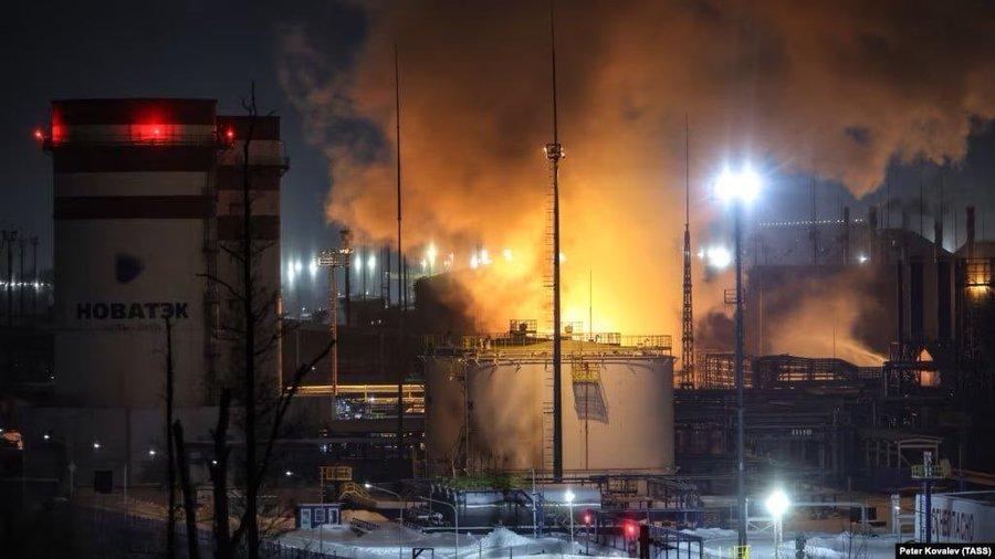 与此同时,乌斯特卢加地区的画面显示,乌克兰无人机再次于夜间对石油设施发起攻击。