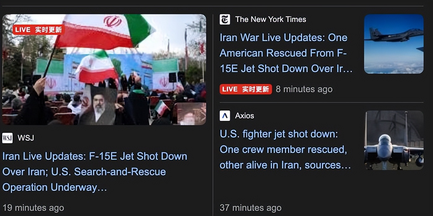 一架美军F-15E被击落,两名机组成员跳伞落地,掉进伊朗腹地。
