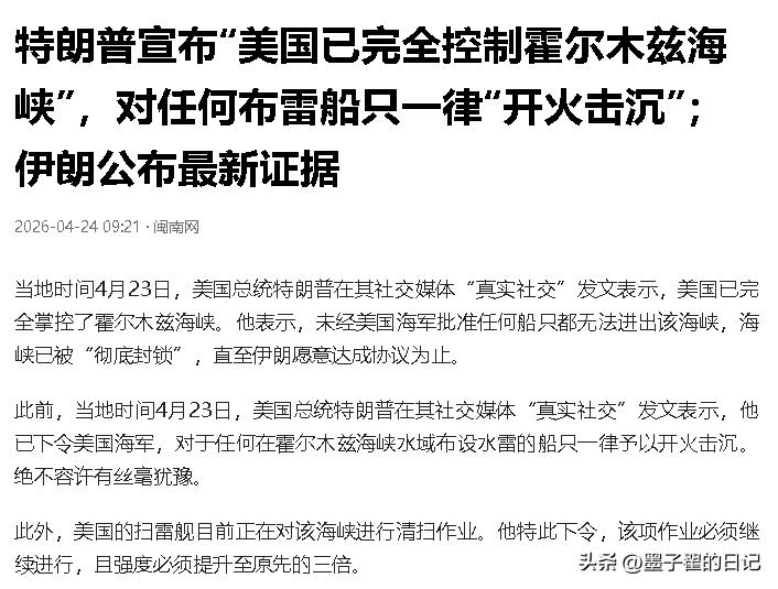 一边封海峡,一边扫水雷,一边放狠话,特朗普这一套组合拳,就是要把伊朗逼到绝境。