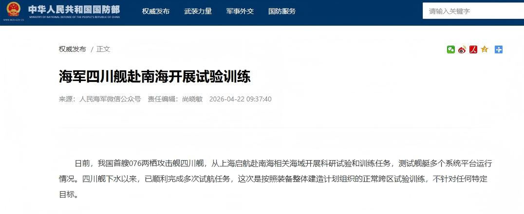 文|中外舰闻 知名军事撰稿人 2026年4月,国产076型两栖攻击舰首舰四川舰驶离沪东中华造船厂,正式开启第三次海上试验任务。与前两次近海海试不同,此次是四川舰首次执行跨区海试,远赴2000公里外的南海开展系统性试验与训练。而从以往的海试节点推测,这次测试很可能会涉及舰载机上舰测试,很可能会首次弹射攻击21隐身无人机。 ![]() 【官方发布四川舰南下的消息】 ![]() 【076型两栖攻击舰四川舰】 作为中国海军两栖作战装备体系的跨代升级产物,076型四川舰从设计之初就走出了一条区别于全球传统两栖攻击舰的技术路线。该舰舰长250米,舰宽约52米,满载排水量接近5万吨,采用全燃动力搭配综合电力推进系统,最大航速可达25节。 这一动力配置不仅为舰艇提供了充足的航行动力,更为其核心装备——电磁弹射器和拦阻装置的运行提供了稳定的能源保障。 与美国黄蜂级、美国级等传统两栖攻击舰依赖直升机和短距/垂直起降战斗机的舰载机配置不同,076型是全球首艘将电磁弹射器与拦阻器集成到两栖作战平台的舰艇,同时也是全球首艘以无人机为主力舰载机的两栖攻击舰。 ![]() 【四川舰的电磁弹射器】 ![]() 【攻击21隐身攻击机】 其核心舰载机为国产攻击-21隐身舰载作战飞机,作为攻击-11无人机的舰载改进型号,攻击-21继承了优异的隐身性能,同时具备更大的航程和作战半径,能够执行远程精确打击、战场侦察、电子战等多种任务。 这一设计彻底打破了两栖攻击舰仅能承担近距离火力支援和兵力投送的传统定位,赋予了其独立执行制海和对敌方陆地纵深目标进行打击的的能力。 四川舰的建造与试验进度,充分展现了中国造船工业的成熟度与高效性。该舰于2022年正式开工,2024年12月完成下水,仅用不到11个月的时间就完成了舾装和系统调试工作,于2025年11月13日开启首次海试。 ![]() 【第一次海试中的四川舰】 首次海试为期3天,主要对舰艇的整体建造质量、基础系统可靠性进行初步检验,结果显示舰艇各项指标均达到设计要求,未出现重大故障和问题。 仅仅半个月后的11月28日,四川舰便马不停蹄地开展了第二次海试,此次海试周期长达19天,是对舰艇航海性能、动力系统、导航通信系统等核心设备的全面考核。 两次海试间隔之短、试验强度之高,在全球大型水面舰艇建造史上都较为罕见,既证明了四川舰基础设计的合理性与建造工艺的可靠性,也为后续高难度的电磁弹射试验积累了宝贵的海上运行数据。 此次第三次海试距离第二次海试间隔4个月,外界普遍认为,这段时间船厂和科研团队主要完成了电磁弹射器的陆地联调测试、舰载机与舰艇系统的适配性调试,以及海上弹射试验的各项准备工作。 ![]() 尽管中国已经在福建舰航空母舰上积累了电磁弹射技术的研发和试验经验,但两栖攻击舰的应用场景与航母存在显著差异。海洋环境中舰艇的持续横摇、纵摇和升沉运动,会对电磁弹射器的轨道精度、弹射力控制提出更为严苛的要求。任何微小的技术偏差都可能导致试验失败,因此必须进行充分的地面模拟和准备工作,确保海上试验万无一失。 中国海军选择将南海作为此次电磁弹射试验的核心海域,有着多方面的考量。首先,从东海到南海超过2000公里的跨区机动,是对四川舰长航时航行能力、全系统稳定性的一次综合检验。远距离、复杂海况下的航行能够最大限度地暴露舰艇在设计和建造中可能存在的隐蔽问题,便于在交付列装前彻底解决,从而缩短战斗力形成周期。 其次,南海海域具备更好的试验保密条件。东海海域相对狭窄,美日两国在此部署了密集的海空侦察力量,包括预警机、侦察机、水下监听系统等,能够对中国海军的舰艇活动进行全方位监视。 四川舰作为全球首款电弹两栖攻击舰,其电磁弹射技术参数、隐身无人机的作战性能均属于核心军事机密,在东海开展试验极易造成关键信息泄露。而南海海域广阔,远离美日的核心侦察基地,对方难以实施持续、有效的侦察行动,能够有效保障试验的保密性。 ![]() 【美日菲等多国目前正在巴士海峡附近演习】 最后,此次海试也兼具重要的战略威慑意义。当前美日菲三国正在南海举行大规模联合军演,日本出云级轻型航空母舰首次参演,试图在南海地区制造紧张局势。中国海军此前已派出辽宁舰航空母舰编队前出应对,四川舰在此时南下开展试验训练,能够与辽宁舰编队形成战略配合,向外界展示中国海军维护南海主权和海洋权益的坚定决心与强大能力。 西方防务观察家普遍认为,四川舰未来很可能会被部署到南海方向。一方面,南海广阔的海域能够充分发挥攻击-21无人机大航程、大作战半径的优势,实现对南海全域的快速覆盖和火力投送;另一方面,美日在南海地区的防空反导体系存在明显短板,缺乏能够有效探测隐身目标的先进雷达系统,攻击-21无人机在此区域的突防概率将大幅提升。 ![]() 【076代表了新时代的开始】 除了核心的作战能力外,076型两栖攻击舰还具备极强的多任务适应性。其强大的人员和装备搭载能力,使其能够高效执行撤侨、人道主义救援、灾害救助等非战争军事行动。在捍卫中国海外利益的过程中,四川舰可以在不派遣航空母舰的情况下,保持足够的军事存在和威慑力,既能够有效应对各类安全威胁,又能够避免因航母部署导致的局势升级,成为中国海军执行前沿海域任务的“